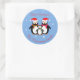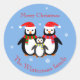 The text on this cute winter sticker is fully editable - just type in the boxes. Or leave the suggested "Merry Christmas" as shown. This family of penguins is wearing colourful festive hats and striped scarves to keep warm as snowflakes start to fall.