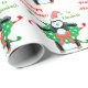 This festive Holiday gift wrap features a cute image of a cartoon penguin in a green Christmas wreath with a red bow. The image is placed on a white background, with customizable text in red that says Happy Holidays! and your own personalization in green. You may easily make it say whatever you'd like. Festive, unique, and colourful! Kids will love it!