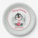 Cute Christmas Penguin with Stocking Name Paper Plate