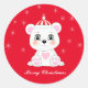 Cute Christmas Polar Bear & Snowflakes on Red Classic Round Sticker