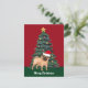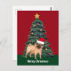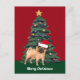 This beautiful custom Christmas postcard features a cute pug wearing a Santa Claus hat in front of a pretty Christmas tree decorated with colourful ornaments. Perfect pet owner postcards with an adorable dog drawing.