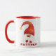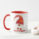 Features a cute, happy Christmas gnome wearing a red hat and personalized with your name underneath. Image is the same on both sides of mug so it works for both right and left-handed. Start a new tradition for the holidays with a mug each member of your family!