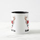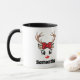 Cute Christmas mug features an image of a red nosed reindeer face. Personalize this festive mug with a name or other custom text. Great festive holiday gift for family and friends.