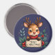 Cute Christmas Reindeer with Holly and Sign Magnet