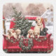 Cute Christmas Retro Red Truck With Puppies Dogs Square Sticker