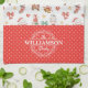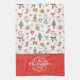 Add some holiday cheer to your kitchen with this festive Christmas kitchen towel! Featuring a delightful pattern of Santa, reindeer, Mrs. Claus, gingerbread men, snowmen, and other cheerful holiday illustrations, it’s the perfect way to brighten up your space. Personalize it with your family name for a unique and heartfelt touch. A charming addition to your holiday décor or a thoughtful gift for loved ones! (c) Whimsy Paperie