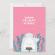 Vibrant colored letters, trees, holly and cancy canes in a cheerful message suitable for a non-religious holiday greeting. I especially liked it on the black background which made the design pop.