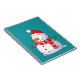 A cute Christmas snowman who is kind of chubby and jolly wearing a striped scarf and a red christmas hat. Festive and fun.