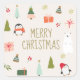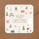 Cute christmas sticker with hand drawn symbols of christmas on pink background