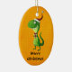 Merry Christmas Tyrannosaurus Rex. Cute and Happy prehistoric Santa Claus helper. Little T-rex with red Santa hap on, holding Christmas gift with his very short adorable hands. Nice Christmas Dinosaur illustration on many presents ideas from Party Monster Store.