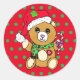 Cute Christmas Teddy Bear with Candy Cane Classic Round Sticker