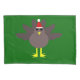 This awesome pillowcase features a funny cartoon of a Christmas turkey with big black eyes, a small yellow beak and tail feathers sticking up. The feet are facing in opposite directions making the turkey look clumsy. The turkey is wearing a red and white Santa hat and is ready for Christmas.