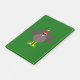 This awesome pad of post it notes features a funny cartoon of a Christmas turkey with big black eyes, a small yellow beak and tail feathers sticking up. The feet are facing in opposite directions making the turkey look clumsy. The turkey is wearing a red and white Santa hat and is ready for Christmas.