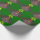 This awesome wrapping paper features a funny cartoon of a Christmas turkey with big black eyes, a small yellow beak and tail feathers sticking up. The feet are facing in opposite directions making the turkey look clumsy. The turkey is wearing a red and white Santa hat and is ready for Christmas.