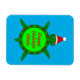 This awesome magnet features a cute Christmas Sea Turtle with a green shell and 4 legs. The turtle is wearing a festive red and white hat. It has cute black and white eyes and a tiny green tail. The outer section of the shell is decorated with alternating holly leaves and berries and pretty red poinsettia flowers.