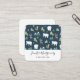 A square business card with a whimsical festive pattern. Polar bears, reindeers, trees. foxes, and snowflakes. On a dark green background.