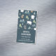 Business cards with a whimsical festive pattern. Polar bears, reindeers, trees. foxes, and snowflakes. On a dark green background.