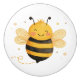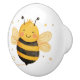 This nursery ceramic knob features a cheerful, chubby bumblebee with bold brown and yellow stripes, a big smiling face, rosy cheeks, and tiny wings. The playful bee buzzes with a tiny trail behind it, spreading happiness.