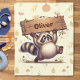 This fun personalized fleece blanket features a cute chubby raccoon holding an oversized wooden name sign.