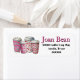 Four cute coffee cups with a variety of heart patterns on the cups in pink and red. Fully customize this cute coffee lovers return address labels with your name and return address.