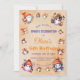The invitation background is a blend of soft purples and orange. Below that, there’s space to fill in all the party details, like the date, time, and location, surrounded by cute little coffee mugs and friendly ghost illustrations. This invite is the perfect mix of spooky fun and cozy cuteness, setting the tone for a birthday party full of smiles, laughter, and playful ghostly charm!