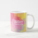 Cheerful, inspirational morning quote, "Believe in Good Coffee!" This is a design featuring words of wisdom for coffee lovers everywhere in search of that perfect morning brew. Design has a colourful abstract floral watercolor background in pastel tones of pink, yellow and turquoise. Fonts is bright white. Colour of font can be easily customized in the Zazzle design tool section. Other designs available.
