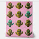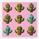 Small, adorable cacti, each in a unique pot. With unusual, bright colors: some have delicate mint green hues, while others sport a soft sky blue. Some have little flowers on the top, like wreaths of sunshine yellow or bright pink, have rounded shapes and a cozy, friendly appearance.
