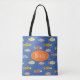 Kids personalised summer tote bag with cute colorful fish pattern.