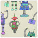 Cute colorful robots on yellow background fabric