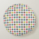Cute colourful 70s pattern with polka dots round pillow