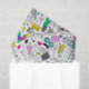 So much fun in one print! This pattern is a black and white cartoon sketch with colourful touches throughout. Features pieces like rainbow clouds, flamingos, doughnuts, cupcakes and ice cream, 80s icons, skateboards, anchors, sneakers, cacti, moustaches, cameras and SO MUCH MORE!!! Great for an 80s party, or just a tonne of every day fun.