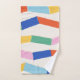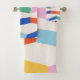 This stylish bath towel set features a colourful and whimsical pattern of geometric shapes and stripes.