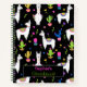 Cute Colourful Alpaca Cactus Custom Name Black Notebook
