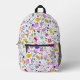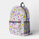 So much fun in one print! This pattern is a black and white cartoon sketch with colourful touches throughout. Features pieces like ice cream, doughnuts, lollipops, pretzels, cupcakes, coffee, hot chocolate, cherries, cake and SO MUCH MORE!!! Great for an 80s party, or just a tonne of every day fun. Trendy Cute Colourful Candy Sweets Desserts Pattern Printed Backpack. Great for back to school for your children, or for a teacher appreciation or holiday gift.