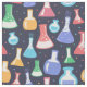 Colourful chemistry themed fabric with lab flasks illustrations and cute dots on a navy blue background. If you are a chemist, chemistry student or teacher and you like crafts this fabric will give you an opportunity to bring together your two interests.