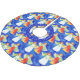 This modern tree skirt has an evergreen pattern with colourful watercolor angels on a blue background.