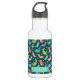 Inspire your child to stay hydrated with our cute, personalized dinosaur water bottle. The personalized water bottle displays your child's name in white text framed by a turquoise rectangle. The background features a pattern of green, orange, pink, blue, purple, aqua, and coral dinosaurs against a solid dark teal.