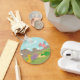 A cute and colourful dinosaur keychain for children. It comes with cartoon dinosaurs, a yellow Brachiosaurus, a purple Triceratops, a green Stegosaurus and a pink Pterodactylus. Background of mountains and clouds. This attractive design is great for kids who love Jurassic, prehistoric or dinosaur themes. Add the child's name to make it extra special.
