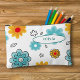 A cute personalized pencil pouch featuring your name and colourful red, orange and blue painted flowers. The perfect zipper case for storing your art supplies for back to school or any time of year.