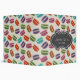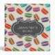 A personalized recipe binder with a cute pattern of macarons in many different colours with a faint polka dot pattern behind. A fancy vintage-looking black and white decorative frame with your text inside.
