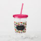 Personalized acrylic tumbler with a cute pattern of macarons in many different colours with a faint polka dot pattern behind. A fancy vintage-looking black and white decorative frame with your text inside.