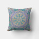 Cute Colourful Mandala In Purple Blue and Gold Throw or Outdoor Pillow. Kaleidoscope of flowering colours of turquoise blue green, lavender purple and light gold and sand.