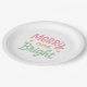 Modern Christmas paper plates featuring a cute and fun design with "Merry and Bright" in cheerful pastel pink and green casual lettering.