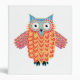 Funny little owl with its wings spread in bright gold and red.