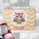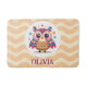 Personalized cute colourful owl bath mat with a wavy yellow background