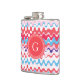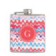 Cute colourful pink red abstract pattern monogram hip flask