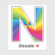 This vibrant sticker featuring a cheerful rainbow design is perfect for kids whose names begin with the letter "N." Its colourful appeal makes it an ideal accessory for personalizing school supplies, arts and crafts, or room décor, adding a fun and engaging touch to any child's belongings.