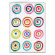 Colourful whimsical playful design of watercolor rainbow circles against a white neutral background. This cute modern Scandinavian infuenced design is simple and modern.