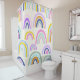 Playful pattern of rainbow shapes in a cute and colourful palette of purple, pastel pink, blue, yellow, sage, and lavender.