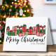Wish everyone a very Merry Christmas with this cute and colourful Christmas Present themed card. You can change all of the font to customize it to your own sayings in addition to your family names. The colour palette includes a cheerful mix of reds, pinks, and both dark and light shades of green. This print encapsulates the whimsy and joy of the holiday season. Personalized Cute Colourful Merry ChristmasPresents Holiday Card Pink Red Green Script Typography.